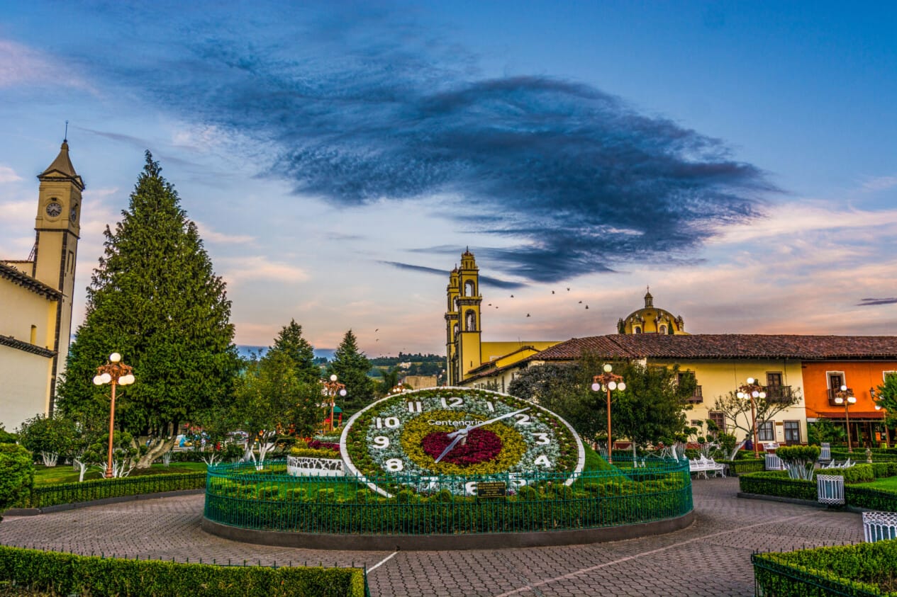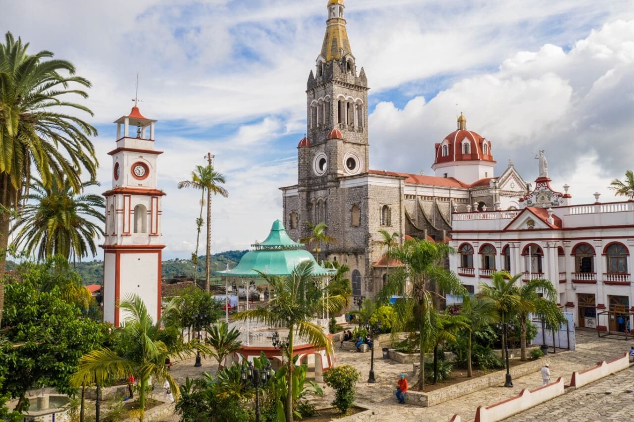 Xicotepec no es solamente uno de los Pueblos Mágicos de Puebla, sino también uno de los productores de café más importantes del estado. Se sitúa en el corazón de la Sierra Madre Oriental, y su pintoresco centro histórico adornado con flores y rodeado por portales con varias cafeterías es una parada obligada. Otros destinos que debes visitar son el Monumental Cruz Celestial, donde te encontrarás con un mirador de cristal, Xochipila y el Monumental Vírgen de Guadalupe, que con 30 metros altura es la más grande del mundo.