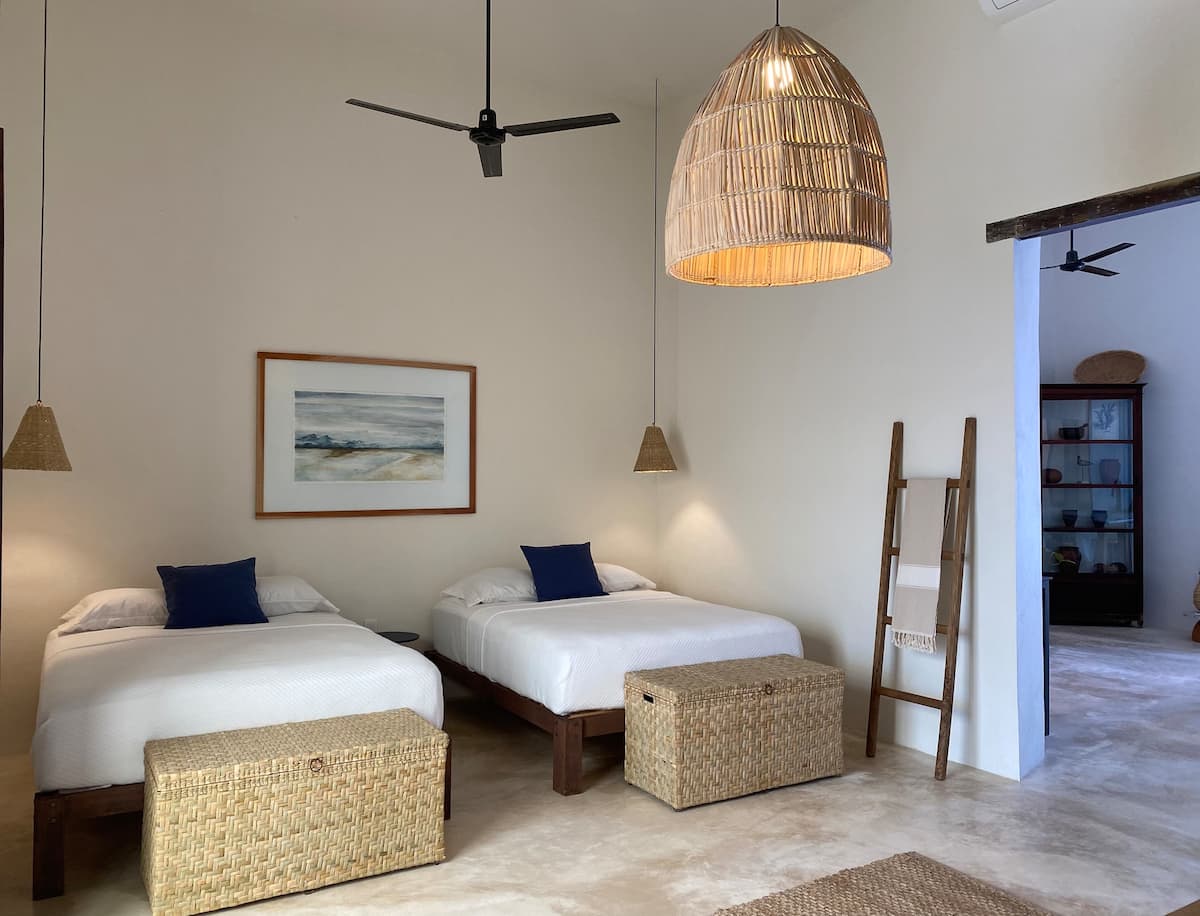 Con una capacidad máxima para 12 huéspedes, esta casa colonial contemporánea brinda una estancia sumamente cómoda, al igual que un recorrido “corto, pero lleno de texturas y visualidad”. Con un costo de $3,500 por noche para máximo 5 huéspedes y de $6,500 para 12, este Airbnb Campeche promete mucho; cuenta con 3 habitaciones, 5 camas y 4 baños y medio.