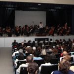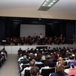 Como parte de las actividades para celebrar el vigésimo aniversario de la Universidad Modelo, la Orquesta Sinfónica “Gustavo Río Escalante” de la Escuela Superior de Artes de Yucatán (ESAY) ofreció un concierto en el teatro centro cultural de mencionado centro de estudios.