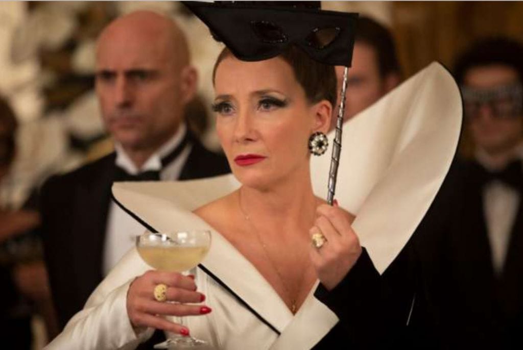 Yves Saint Laurent reaparece como Jeffrey, el asistente de la Baronesa. Este detalle encaja a la perfección con la historia, pues Yves fue una especie de enlace entre la moda clásica y la modernidad. Después del fallecimiento de Christian Dior en 1957, Yves –de tan sólo 21 años– ofreció una visión renovada a la casa, para después construir su propio camino caracterizado por lo hippie, lo rebelde y vanguardista.