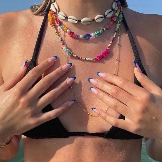 Una forma fácil y rápida de enmarcar la esencia de verano de una forma súper fácil es con unas uñas estilo francesas pero con colores que sean más vivos y con una actitud más desafiante. Recuerda que el verano es caluroso, divertido y lleno de color.