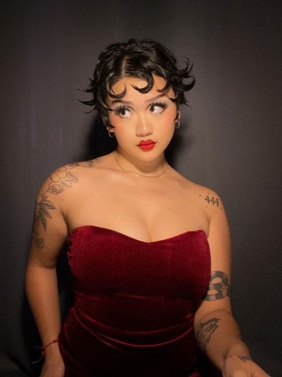 El peinado de Betty Boop es mega perfecto por si andas buscando disfraces para cabello corto, pues toda la magia ocurre con un poco de gel; y, el maquillaje tiene que buscar la redondez de la cara y la expresión de caricatura de los ojos con delineado blanco por abajo.
