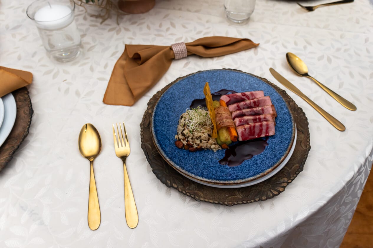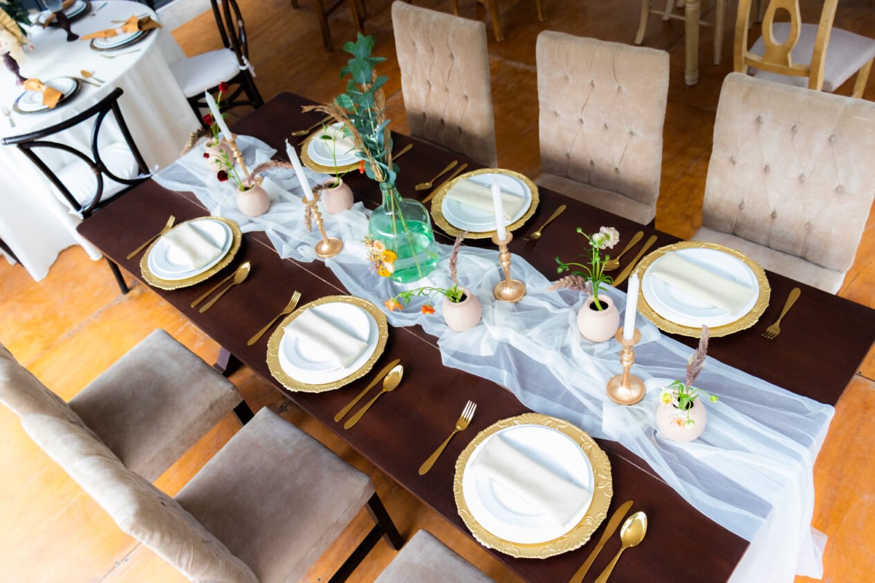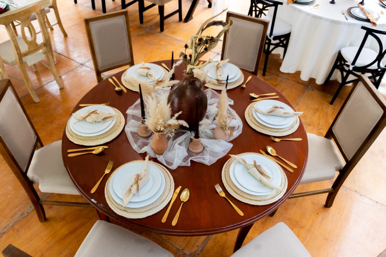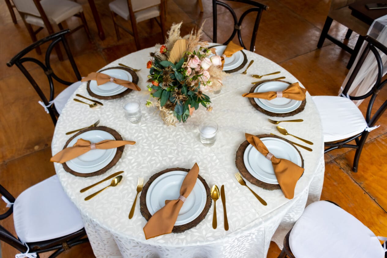 En cuanto al mobiliario, la banquetera ofrece mesas redondas con manteles de lujo con opción vintage caoba; mesas cuadradas con manteles de lujo en vintage caoba y natural; mesas rectangulares con manteles de lujo en vintage caoba y natural, regionales y de espejo; sillas Tiffany, Versalles, Phoenix, Napoleón, Crossback y Cian; sillones Alicia, Carolina, María José, Luis XV y tipo mariposa; platos base, cristalería, cubiertos nacionales e importados y demás adicionales.