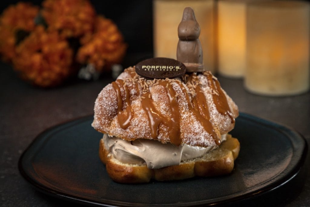 Esta nueva temporada, el pan de muerto de Porfirio’s viene espolvoreado con chispas de chocolate, relleno de crema pastelera con chocolate, finas líneas de cajeta sobre el pan y decorado con un conejito Turín® que te dejara con ganas de más. Para acompañar este tradicional pan te recomendamos sus dos bebidas especiales: “Xólotl”un digestivo con base de Baileys®, café espresso, decorado con un ferrero rocher o “El alma” un drink con base de ron que se sirve en un vaso alto escarchado con amaranto y canela que estamos seguros su sabor te llevará más allá de lo ordinario.