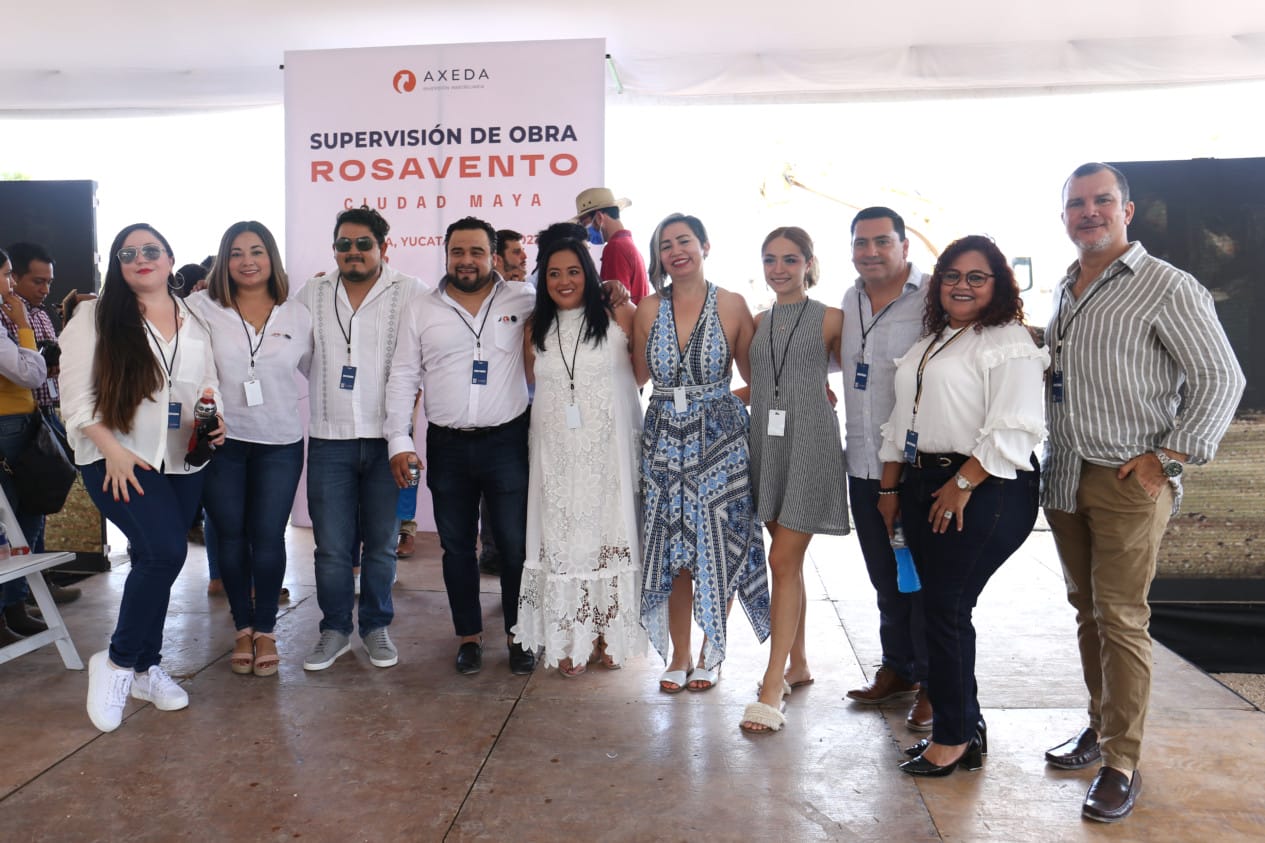 El pasado 13 de abril, Grupo Axeda llevó al cabo la supervisión de obra de su desarrollo residencial “Rosavento, Ciudad Maya”; se mostraron avances de construcción en los terrenos ubicados al norte de Mérida. Al evento acudieron directivos, autoridades, personal de diversas sedes en México y clientes del equipo inmobiliario. Asimismo, se develó una placa conmemorativa en honor a los avances de obra.