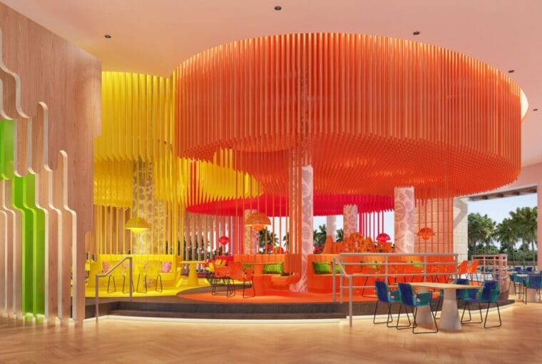 El conocido también como Hotel de Bob Esponja se encuentra ubicado entre Cancún y Puerto Morelos, y cuenta con un total de 280 suites de lujo. El complejo, perteneciente a la cadena hotelera Karisma, usará lo último en tecnología; de modo que para acceder a tu habitación ya no necesites una tarjeta, sino una pulsera electrónica.
