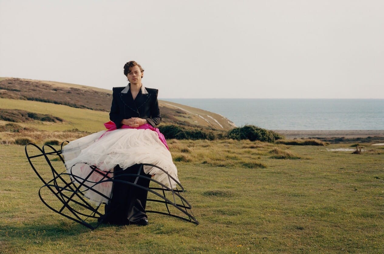 El ganador del grammy, Harry Styles, hizo historia al convertirse en el primer hombre en solitario en ocupar la portada de la edición estadounidense de la revista en sus 127 años de vigencia. El artista, fotografiado por Tyler Mitchell, apareció en la portada utilizando un vestido de la firma Gucci. Sin duda ocupa el primer puesto de las portadas de Vogue más icónicas.