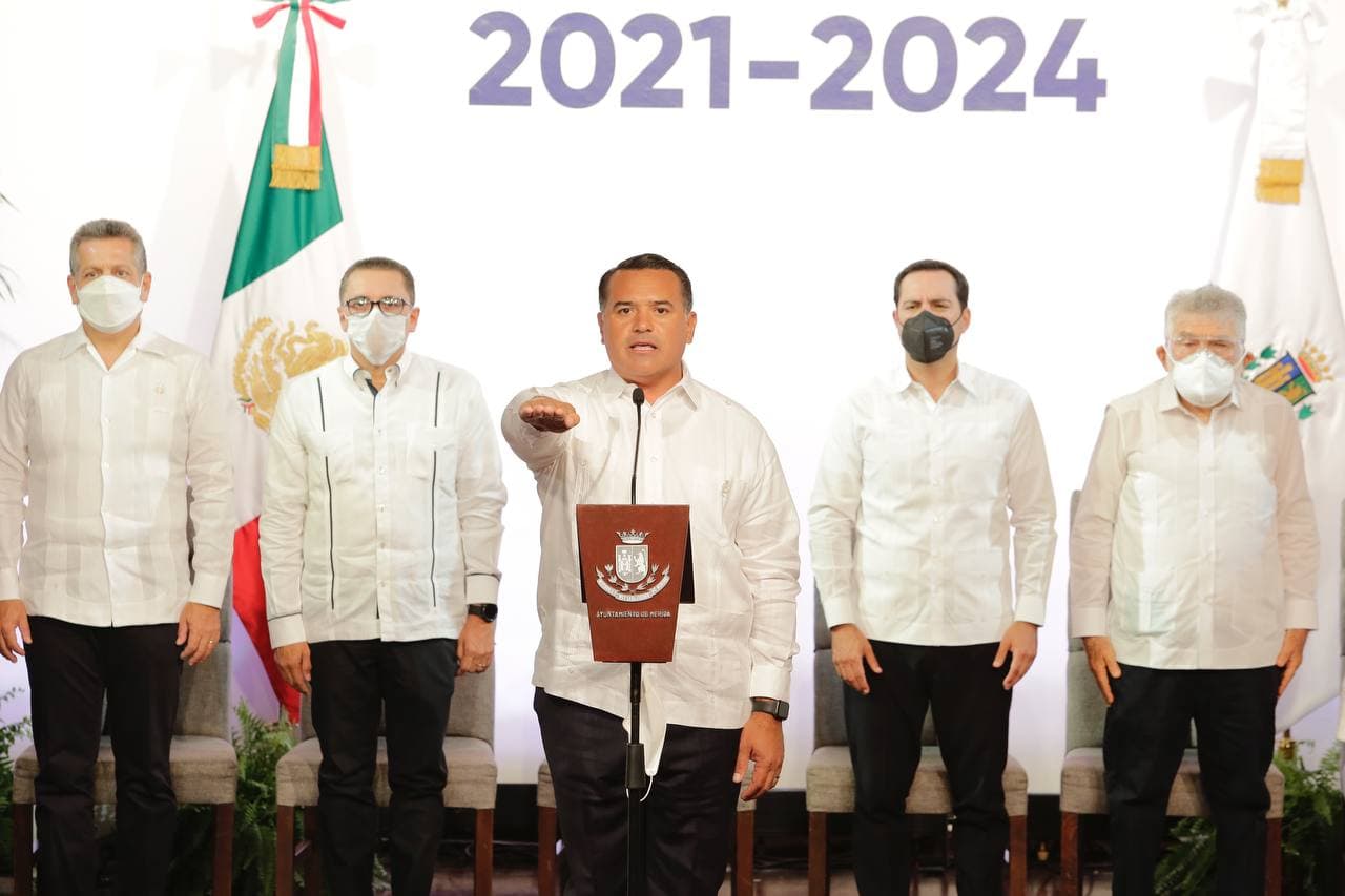 El pasado miércoles 1, en el auditorio “Silvio Zavala Vallado” del Centro Cultural Olimpo, Renán Barrera Concha rindió su compromiso constitucional como presidente municipal de Mérida para la administración 2021-2024. Asimismo, se convirtió en el primer alcalde en dirigir por tercera ocasión el ayuntamiento municipal, y primero en hacerlo dos veces consecutivas. En su mensaje a la ciudadanía destacó la importancia del trabajo colectivo para continuar impulsando el progreso y bienestar de la ciudad. “Me siento tres veces honrado, tres veces agradecido, tres veces obligado a dar siempre más”, expresó el presidente municipal ante un reducido grupo de invitados para respetar el protocolo sanitario.