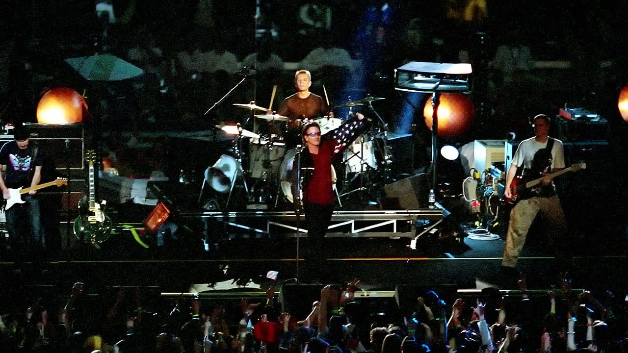 Un año y un evento totalmente diferente; luego del atentado a las Torres Gemelas el 11 de septiembre de 2001, el mundo y Estados Unidos principalmente quedaron conmocionados y totalmente paralizados, pues el número de decesos aumentaba de forma exponencial, razón por la que meses más tarde, durante una amplia audiencia se sensibilizó con la interpretación de la banda U2, quien dedicó su show de medio tiempo a todos los fallecidos.