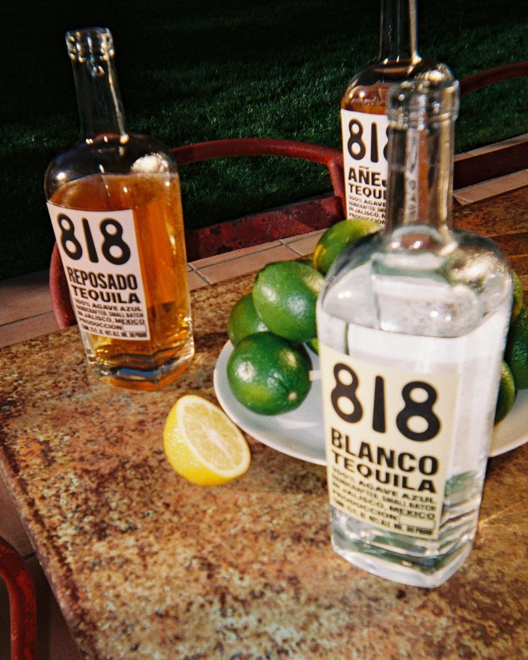Tequila 818 es una bebida creada a mano en Tequila, Jaslico y, de acuerdo con su etiqueta, hecha 100% de agave azul. Vendrá en una presentación de 750 ml y contará con tres versiones: reposado, añejo y añejo blanco; tendrá un costo aproximado de 60 dólares y un grado alcohólico de 40%.